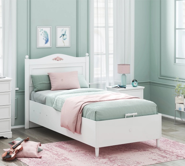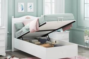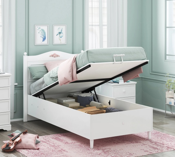 Patul este prevazut cu lada pentru depozitare.